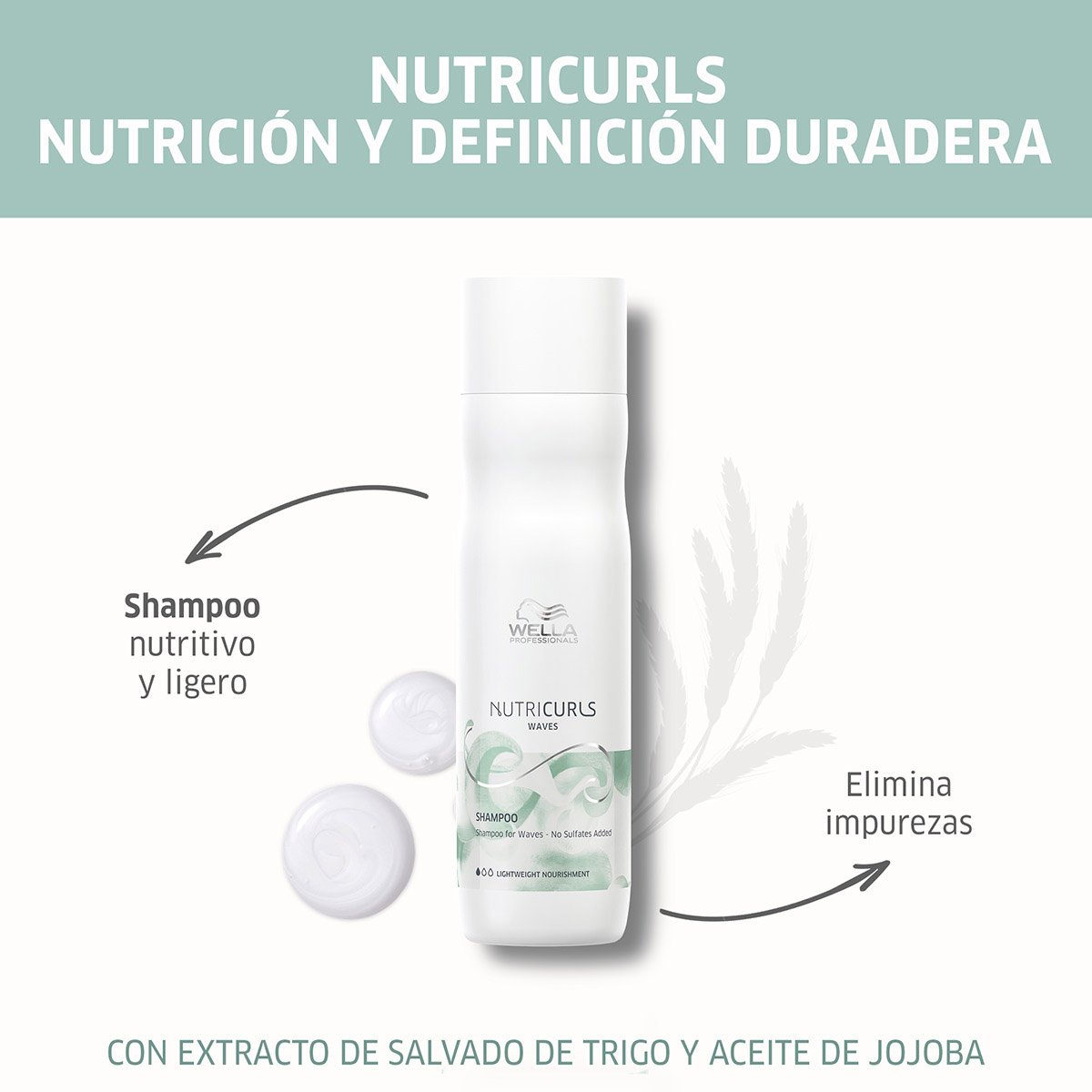 Nutricurls Shampoo limpia suavemente el cabello mientras ayuda a definir las ondas y rizos naturales. Su fórmula hidrata el cabello y reduce el frizz.